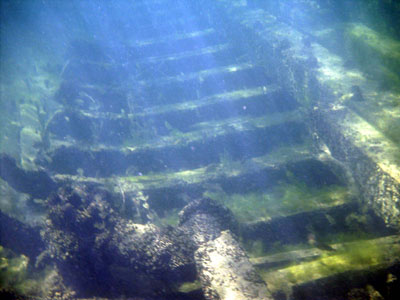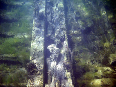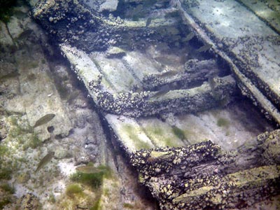 We've documented its exact position on our GPS and dived many times on the wreck. Due to the work of Tyler Somes, Zachary Floss, Preston Pierce and Gerald Stryker, videos and still photos have been taken of the underwater skeleton.
